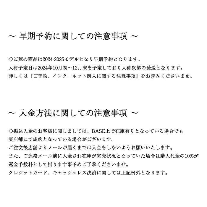 ◇ご覧の商品は2024-2025モデルとなり早期予約となります。入荷予定日は2024年10月上旬〜12月下旬を予定しており入荷次第の発送となります。詳しくは『ご予約、インターネット購入に関する注意事項』をお読みくださいませ。